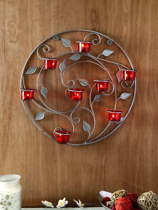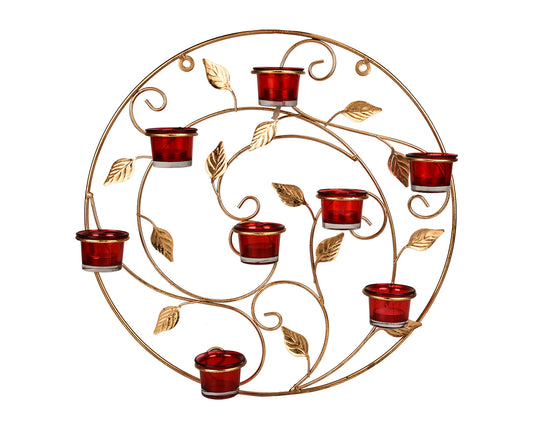 Hosley Metal Tealight Candle Holder with Beautiful Red Glasses
