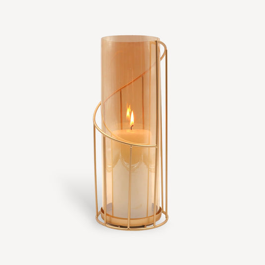 HOSLEY Metal Glass Pillar Candle Holder, Gold, 12 Inch