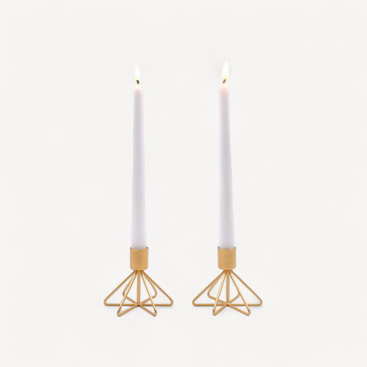 HOSLEY Metal Taper Candle Holders with 4 Taper Candles, Pack of 2, Gold