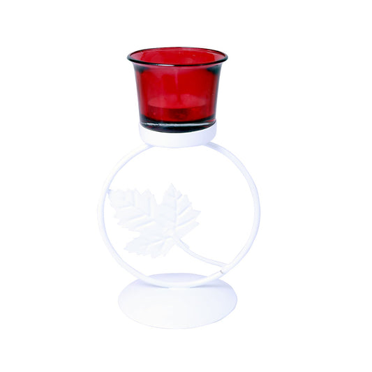 Hosley Metal White Tealight Candle Holder with Red Glass - Pack of 1
