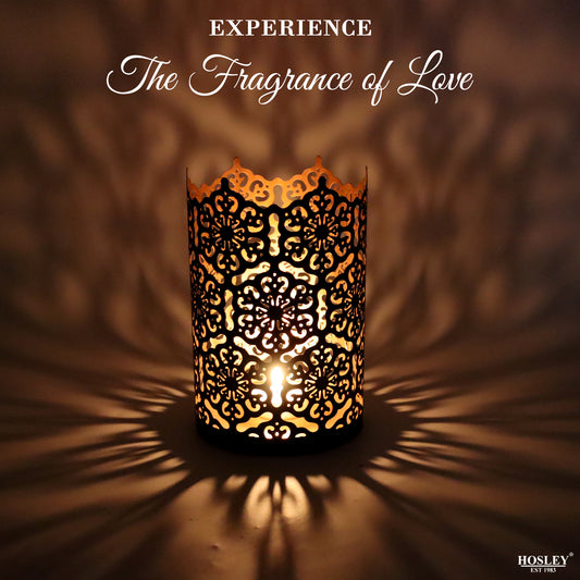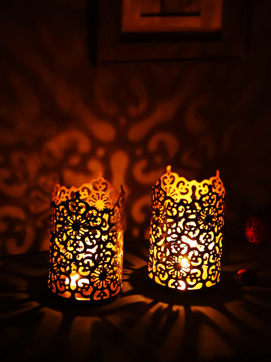 Hosley Set of 2 Black-Gold Metal Sleeve - With Free 6 Unscented Tealights