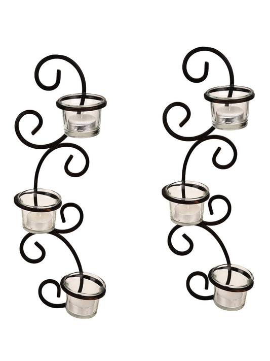 Hosley Set of 2 Antique Bronze Decorative Wall Sconce with Clear Glass and Free Tealights
