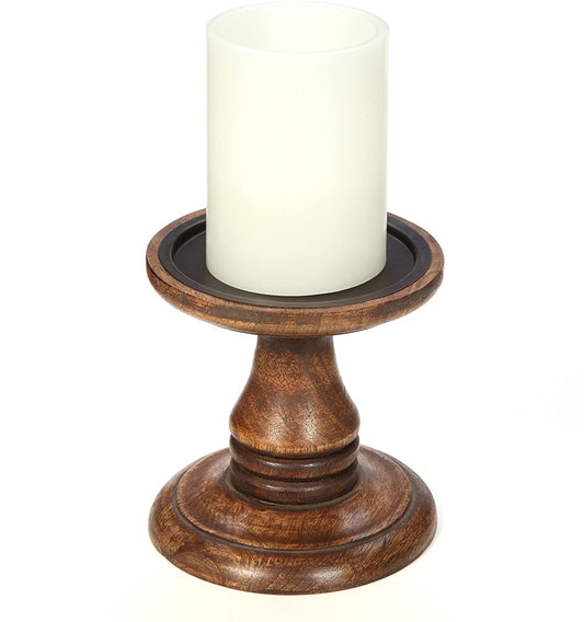 Hosley Set of 2 Wood Pillar Candle Holders 5 Inch High with Free 2 Pcs Pillar Candle Ideal Gift