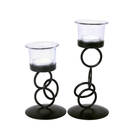 Hosley Tealight Candle Holders With 2 Glass - Black, Pack of 2