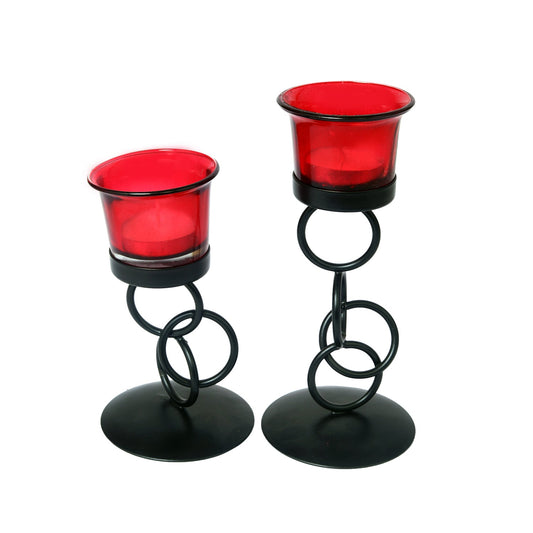 Hosley Tealight Candle Holders With 2 Red Glass - Black, Pack of 2