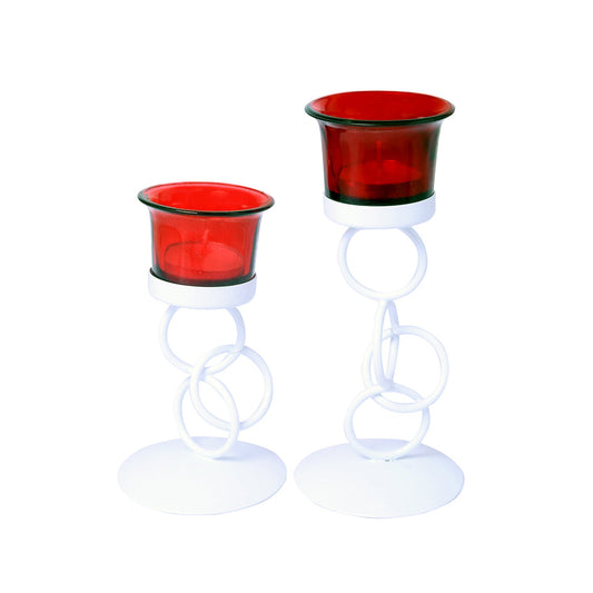 Hosley Tealight Candle Holder Metal Table Top Candle Holder with Red Glasses and Tealight