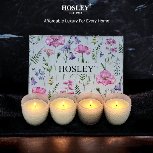 Hosley® Set of 4 Fragrance Frosted Glass Candles with Ceramic Incense Stick Holder Gift Set