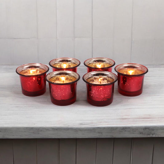 Hosley Decorative Glass Votive Candles with 6 Pcs Tealights - Pack of 6, Red