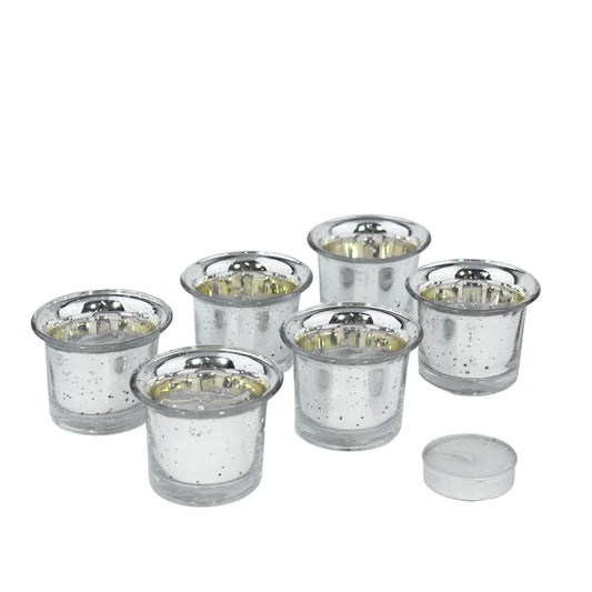 Hosley Decorative Glass Votive Candles with 6 Pcs Tealights - Pack of 6, Silver