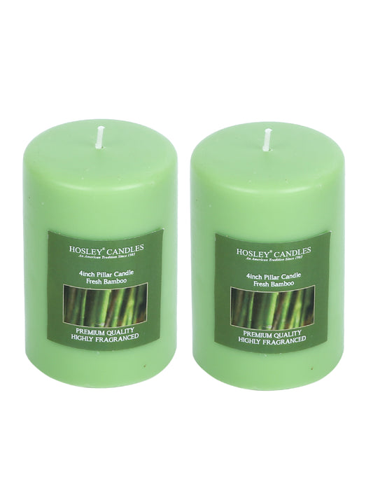 Hosley Set of 2 Fresh Bamboo 4Inchs Pillar Candles