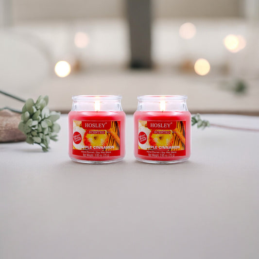 Hosley® Apple Cinnamon Highly Fragranced, 2 Wick, 10 Oz wax, Jar Candle