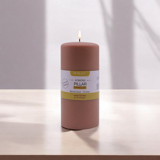 Hosley® Hazelnut Creme Highly Fragranced 6inch Pillar Candle