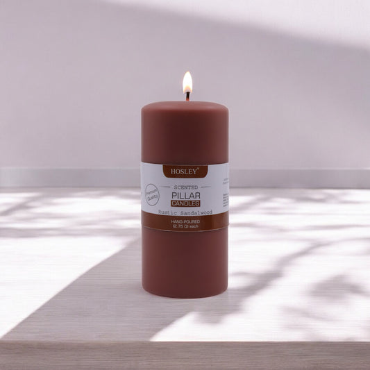 Hosley® Rustic Sandalwood Highly Fragranced 6inch Pillar Candle