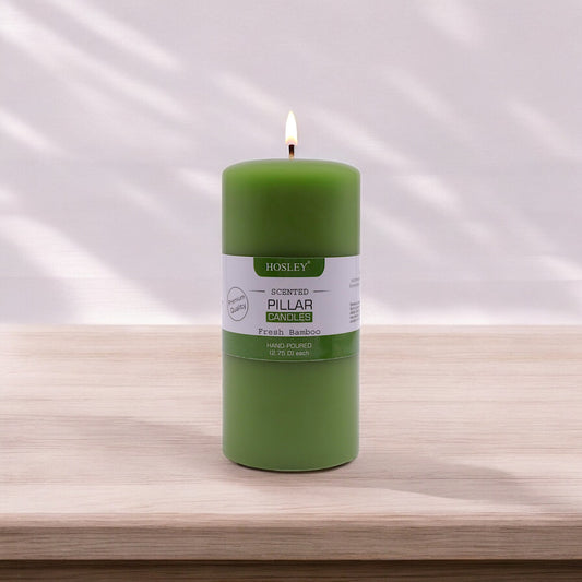Hosley® Fresh Bamboo Highly Fragranced 6inch Pillar Candle