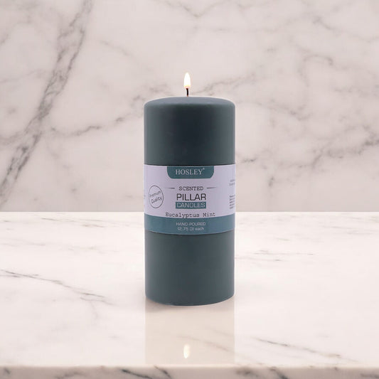 Hosley® Eucalyptus Mint Highly Fragranced 6inch Pillar Candle