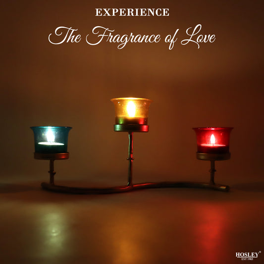 Hosley Iron Tealight Candle Holder With Colorful 3 Glass Cup and Tealights