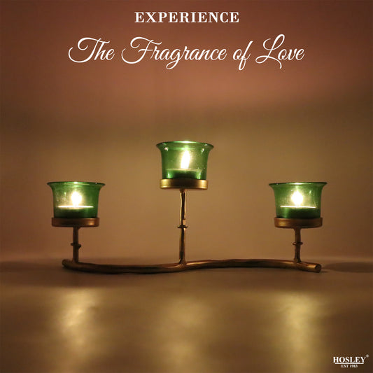 Hosley Iron Tabletop TeaLight Candle Holder with 3 Green Glass Cup and Tealights