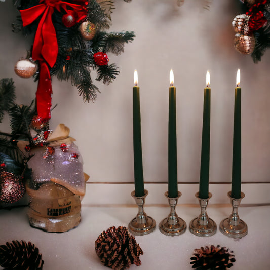Hosley 4-Piece Unscented Green Taper Candles Set - 25CM