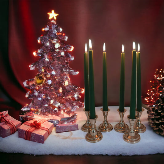 Hosley 6-Piece Unscented Green Taper Candles Set - 25CM