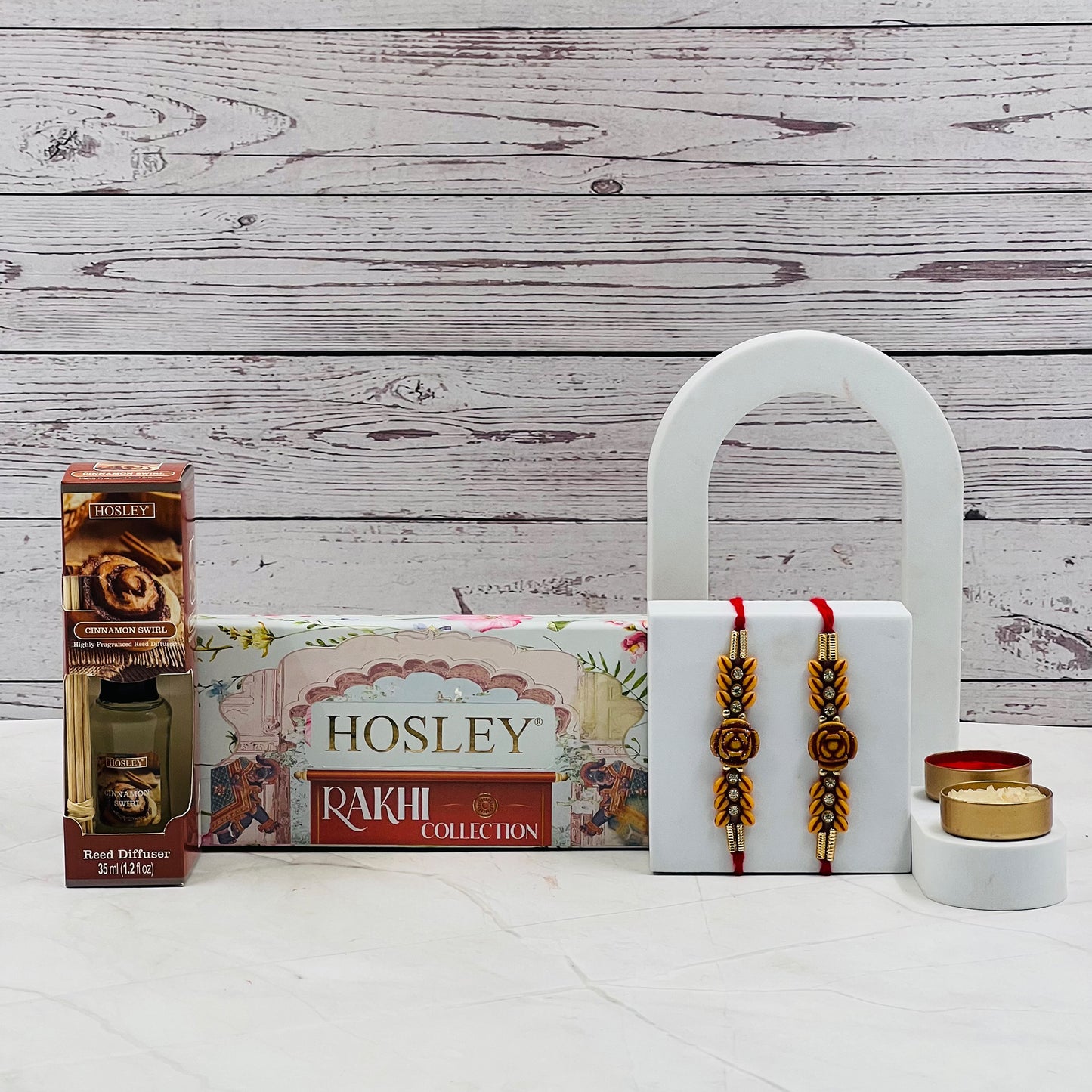 HOSLEY Cinnamon Swirl Reed Diffuser | Rakhi Gift Set | 35 ml